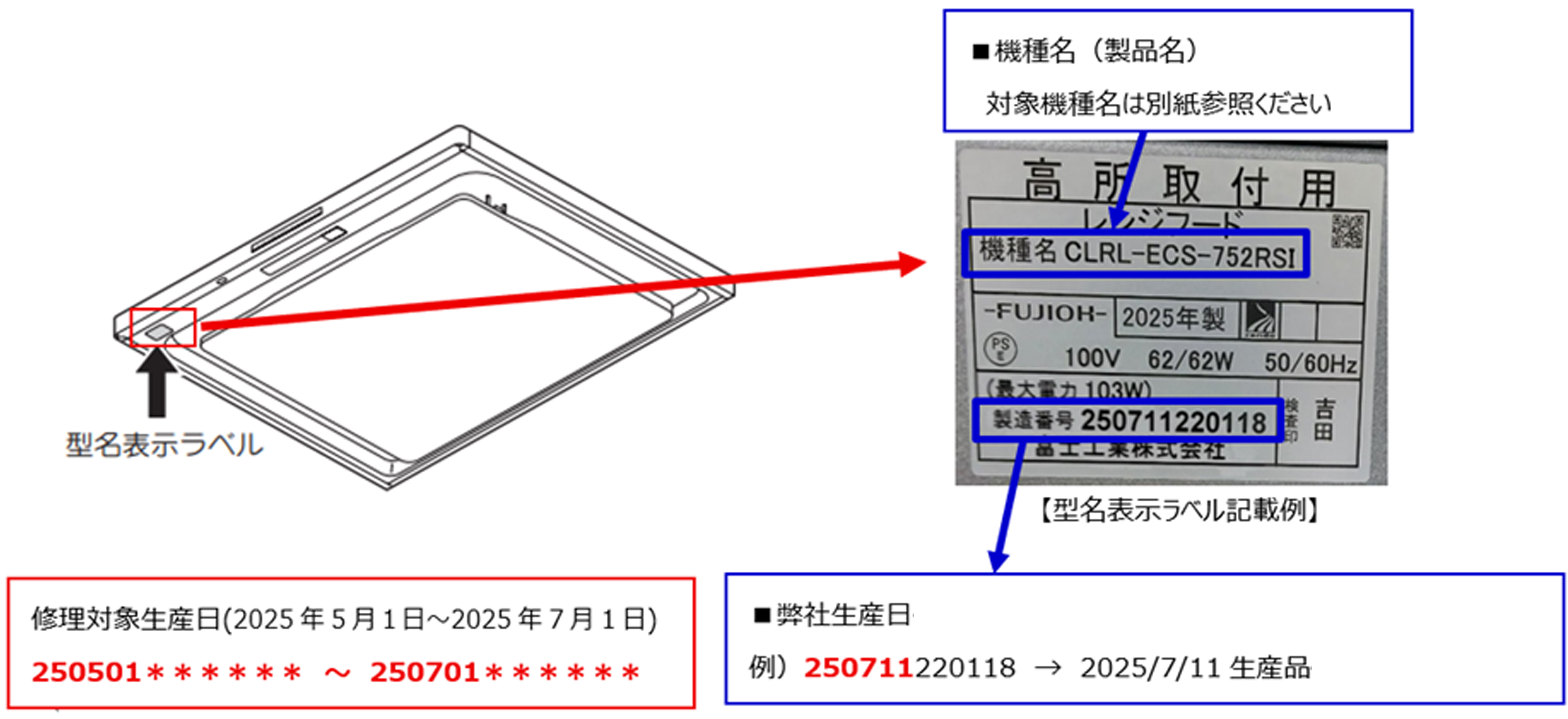 ・お使いのレンジフードの製造番号が修理対象生産日に該当しない製品は、問題なくご使用いただけます。