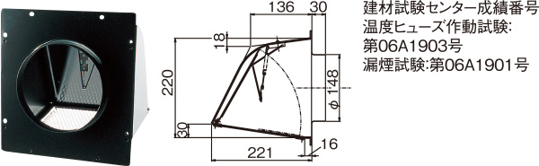 防火ダンパー付ウェザーカバー(防鳥網付)