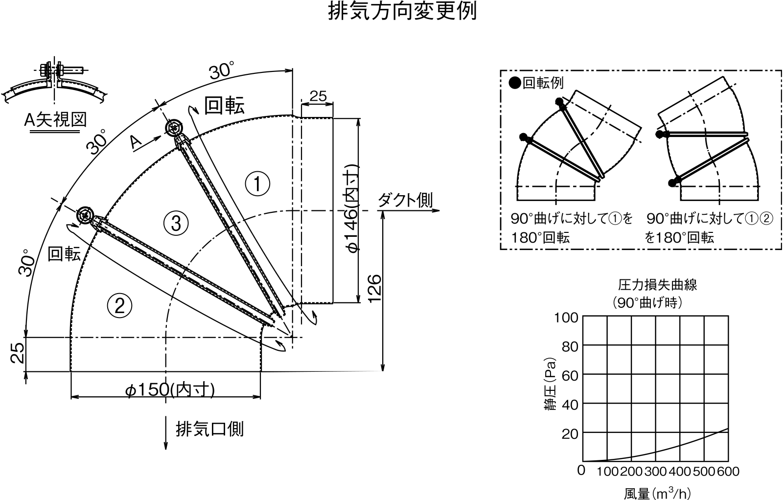 フレキシブルに排気方向を変更できます。ジャバラダクトが使用不可の地域でも取り付け可能です。