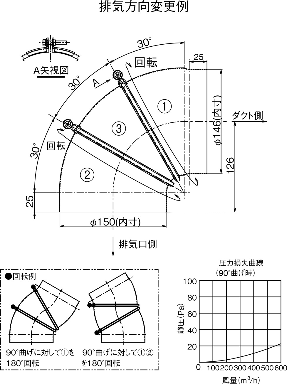 - 排気ダクトは曲がり及び立ち下りの箇所を極力少なくし、内面をなめらかに仕上げること。