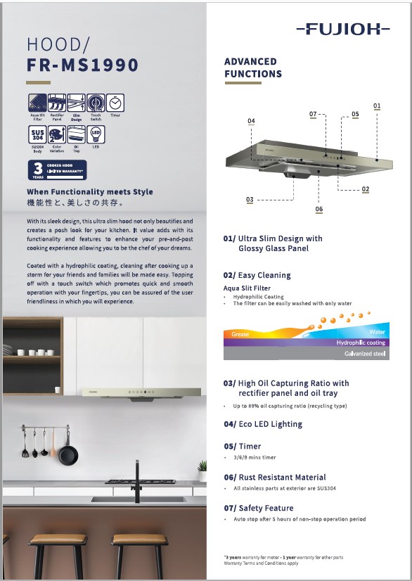 Coated with a hydrophilic coating, cleaning after cooking up a storm for your friends and families will be made easy. Topping off with a touch switch which promotes quick and smooth operation with your fingertips, you can be assured of the user friendliness in which you will experience.