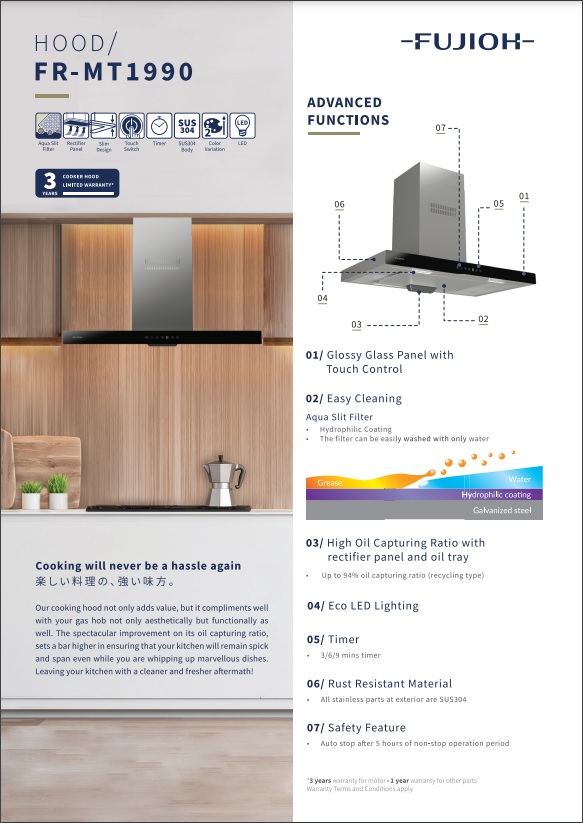 Our cooking hood not only adds value, but it compliments well with your gas hob not only aesthetically but functionally as well. The spectacular improvement in its oil capturing ratio sets a bar higher in ensuring that your kitchen will remain spick and span even while you are whipping up marvellous dishes. Leaving your kitchen with a cleaner and fresher aftermath!