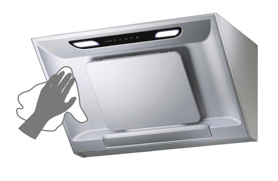 Special OIL REPELLENT COATING on the exterior hood surface repels oil and does not allow oil to stick on the surface. Simply by using a damp cloth, oil is easily wiped off the exterior hood surface, minimizing both time and effort to have a clean hood after every use. All FUJIOH's Made-in-Japan cooker hoods are crafted with OIL REPELLENT COATING on the exterior surface for higher ease of maintenance.