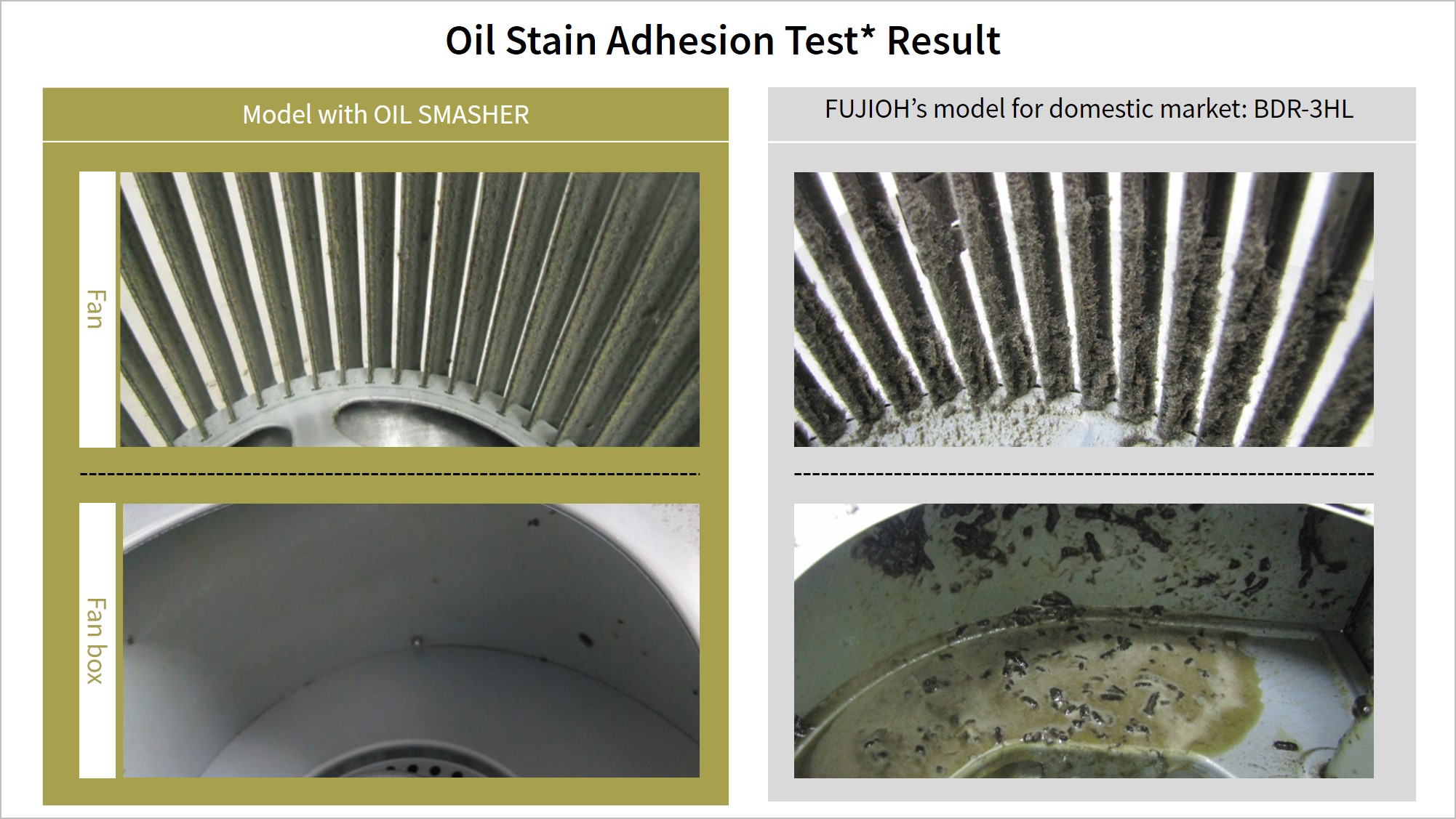 Introducing FUJIOH patented Oil Smasher technology which uses high-speed spinning disk.