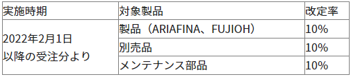 - 富士工業製品のメーカー希望小売価格の一部改定について