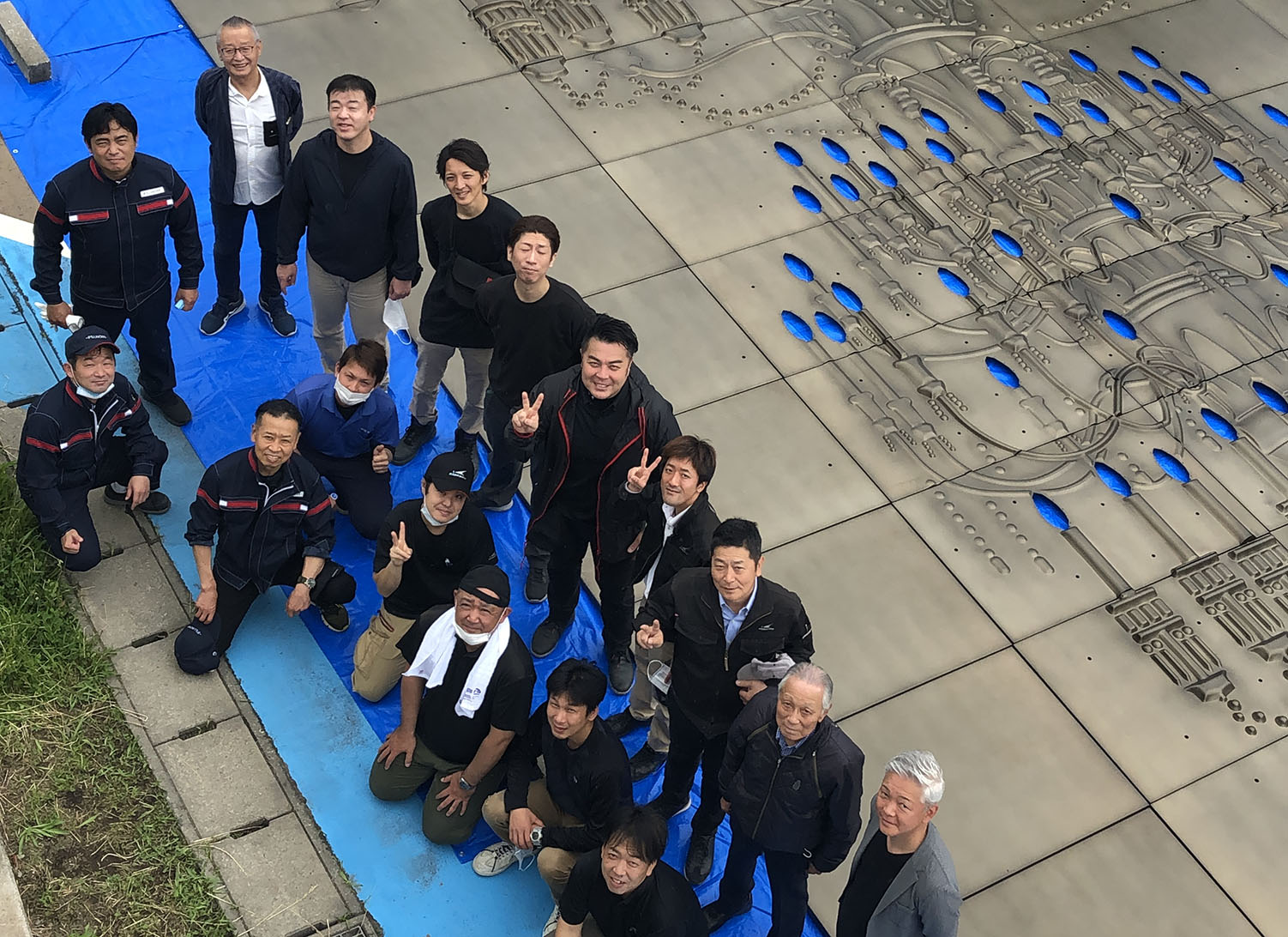 2020年5月下旬、塗装会社(カドワキカラーワークス様)とDemoldのメンバーが横浜市内某所に集結し、鹿島建設様を始めとした関係各社による塗装後のレリーフを確認、最終検査を受けた。ここでようやく製品として晴れて合格となり、レリーフたちはDemoldの手から離れ、施工を担当する会社へと引き渡しが行われた。