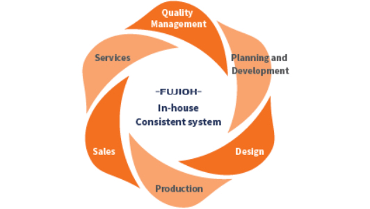 There is a consistent system at Fuji Industrial from research and development to production, sales and finally after-service to provide utmost satisfaction on FUJIOH products. This has also made FUJIOH able to response quickly to new customer needs through flexible factory support