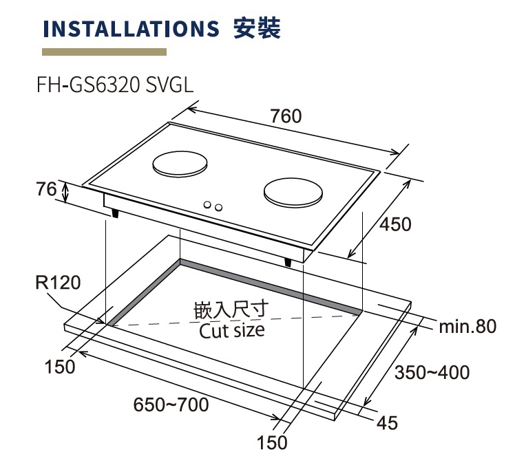 CUT-OUT DIMENSIONS & REPLACEMENT SIZE [mm] |