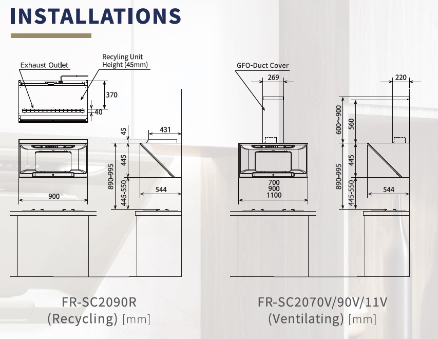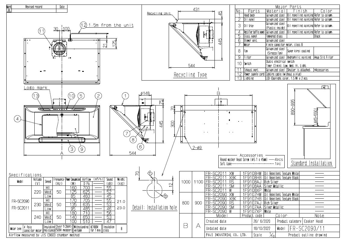 Please download the Installation Manual for the Recycling Unit here (FR-SC2090 Recycling type). The Recycling Unit is not required for FR-SC2090 (Ventilating type) model.