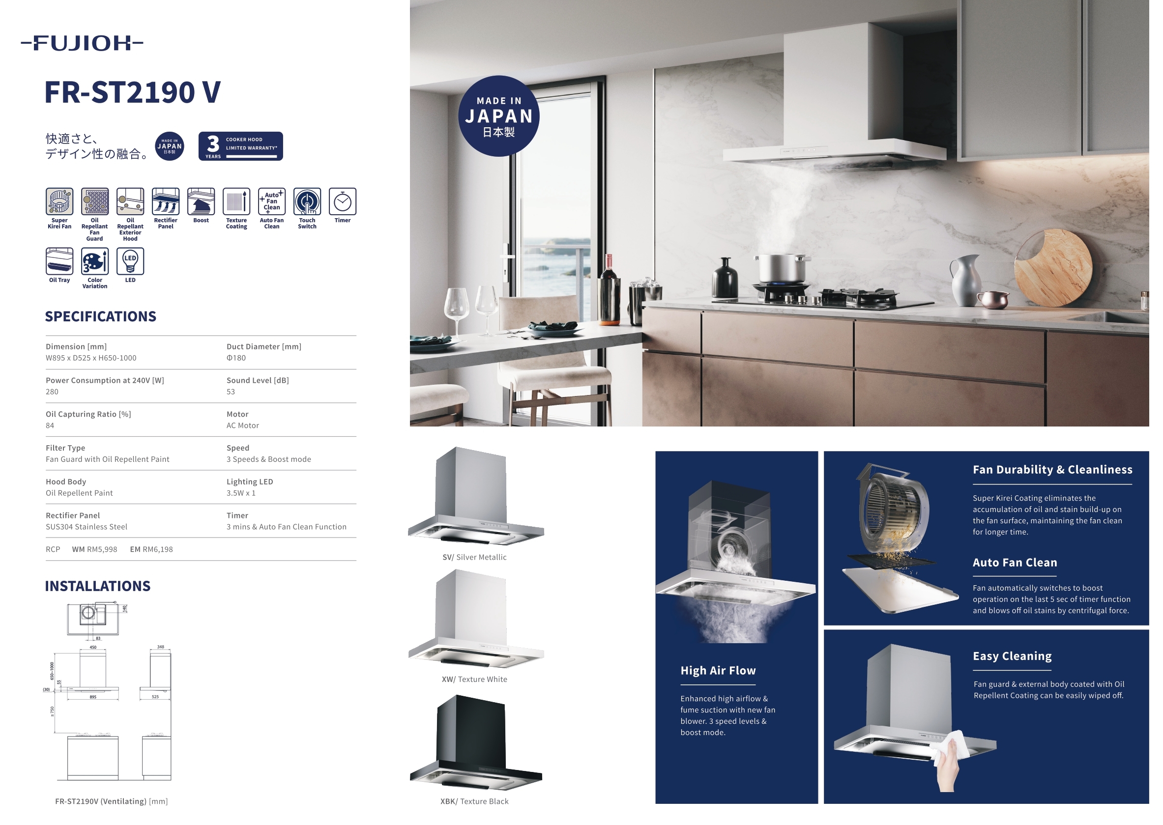 Introducing FR-ST2190 cooker hood with excellent ventilation power. Works perfectly for open kitchen and cooking lovers!