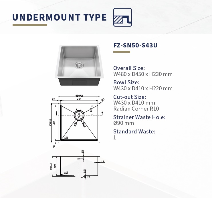 Using 1.2mm-thick material, the durable sinks have deeper depth, allowing you to fit bigger pots and pans in the sink bowl, reducing water splashing to a minimum.
