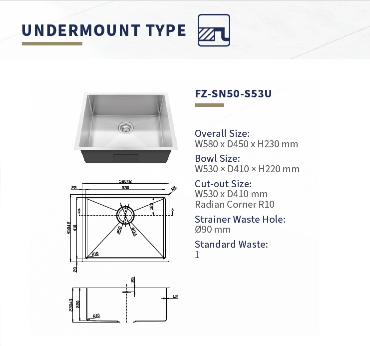 Using 1.2mm-thick material, the durable sinks have deeper depth, allowing you to fit bigger pots and pans in the sink bowl, reducing water splashing to a minimum.