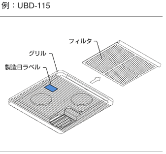 取扱説明書に従ってグリルからフィルタを外してください。グリルの隙間から製造日ラベルを確認してください。