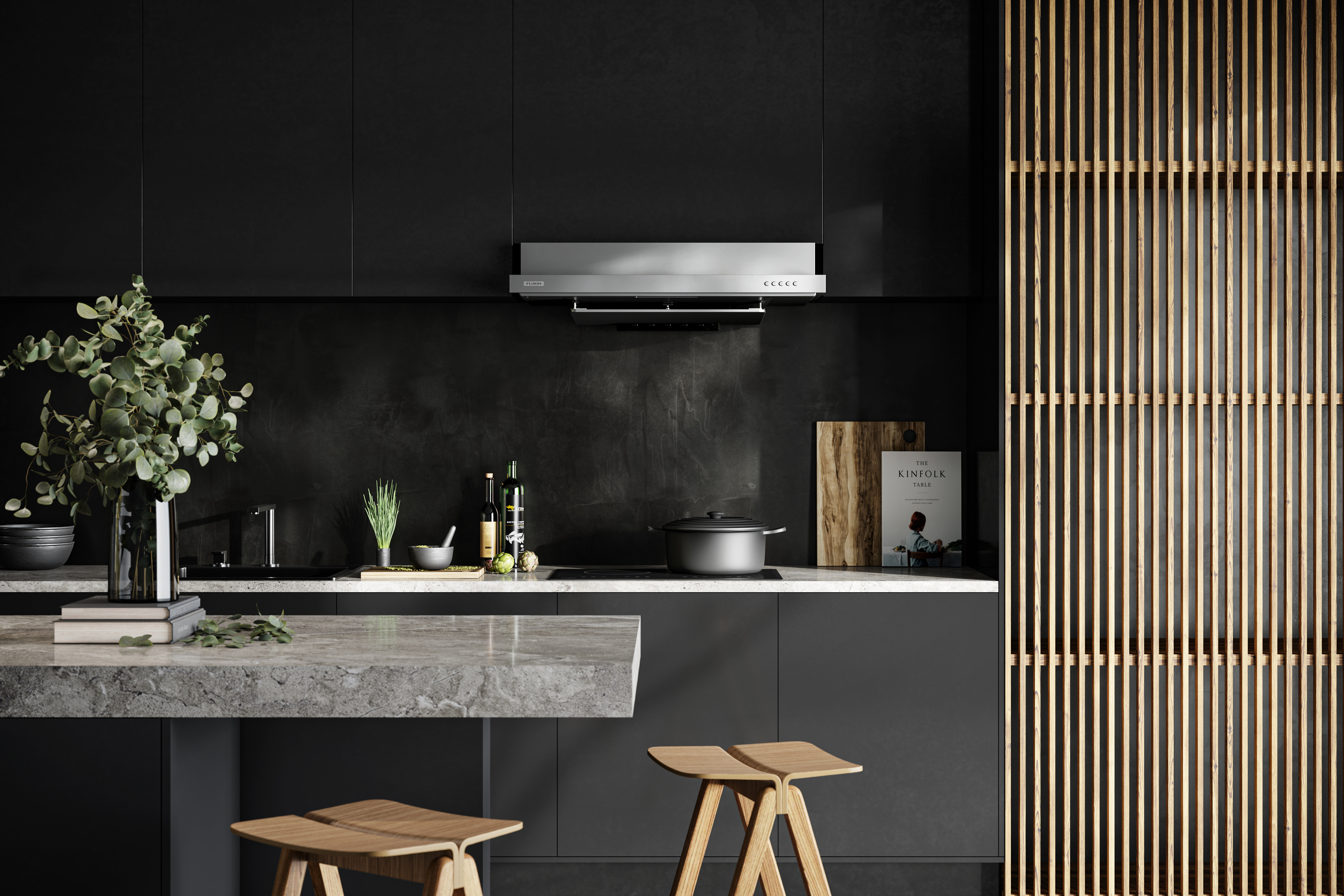 Evolving with new look by professional designers and newly developed hood structure by Japanese engineers, the new slim hood is ready to take on the storm in your kitchen.