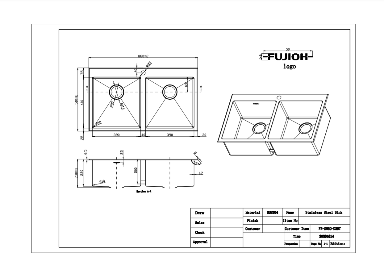Fujioh’s handmade stainless steel sinks come with environmentally friendly noise reduction pads and condensation-resistant coating, equipping your kitchen with a quieter and moisture-resistant sink. With X-shaped drain lines and rounded corners, the sink can be easily cleaned and maintained.