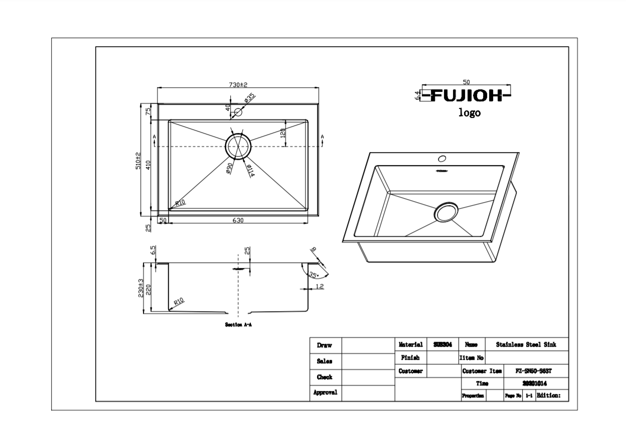 Fujioh’s handmade stainless steel sinks come with environmentally friendly noise reduction pads and condensation-resistant coating, equipping your kitchen with a quieter and moisture-resistant sink. With X-shaped drain lines and rounded corners, the sink can be easily cleaned and maintained.