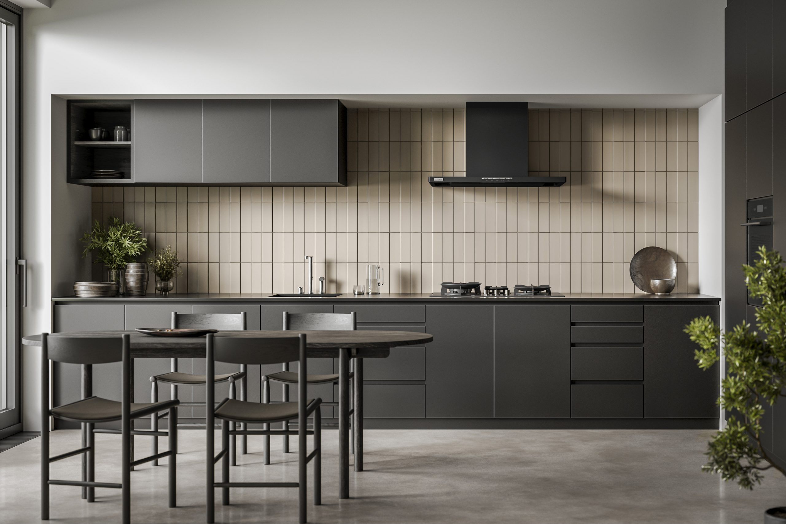 While sharing the same philosophy of clean and simple designs, a modern kitchen does differ across styles, sizes, and layouts. For example, bigger kitchens will need a cooker hood that works hard, while a smaller kitchen can work with a slimmer hood to maintain clean and fresh air in the kitchen.