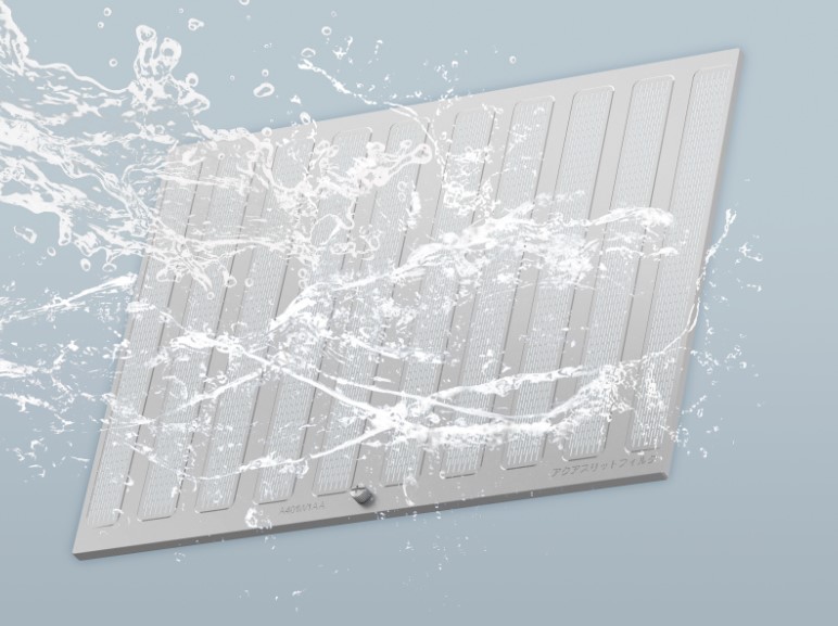 The Aqua Slit Filter is one of the easy-to-clean components in FUJIOH range hoods. Thanks to its hydrophilic coating, which has high compatibility with water, the oil on the surface of the filter can be easily washed with just water. The Aqua Slit Filter is available in the following FUJIOH cooker hood models: FR-CL1890, FR-SC2090, FR-FS2290, FR-MS2390, and FR-MT1990.