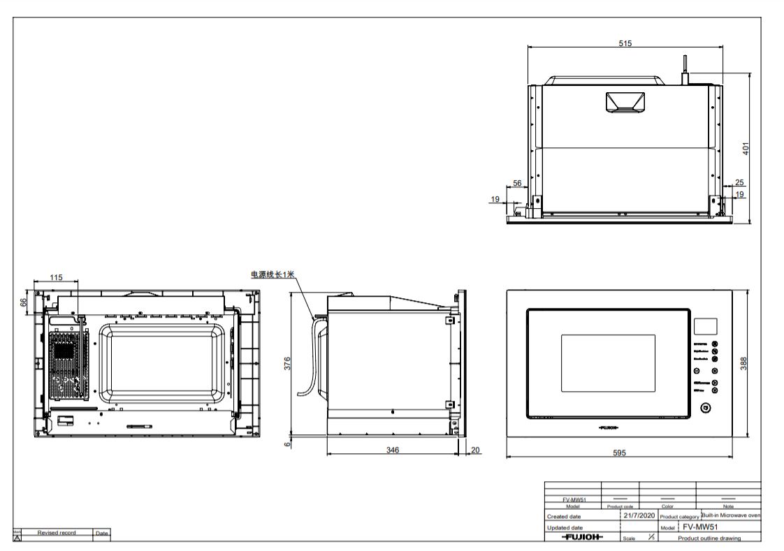 This sleek looking FUJIOH FV-MW51 built-in microwave oven comes with additional grill function that o ers wider choices of instant, prompt recipes, allowing you to appreciate grilled cuisine in addition to the usual reheating, defrosting and cooking options, amidst your busy lifestyle.
