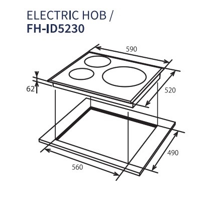 A cutting-edge FH-ID5230 induction hob, featuring a sleek bevelled edge design that blends modernity and performance. The premium aesthetic extends beyond the exterior, encompassing exceptional performance as well.