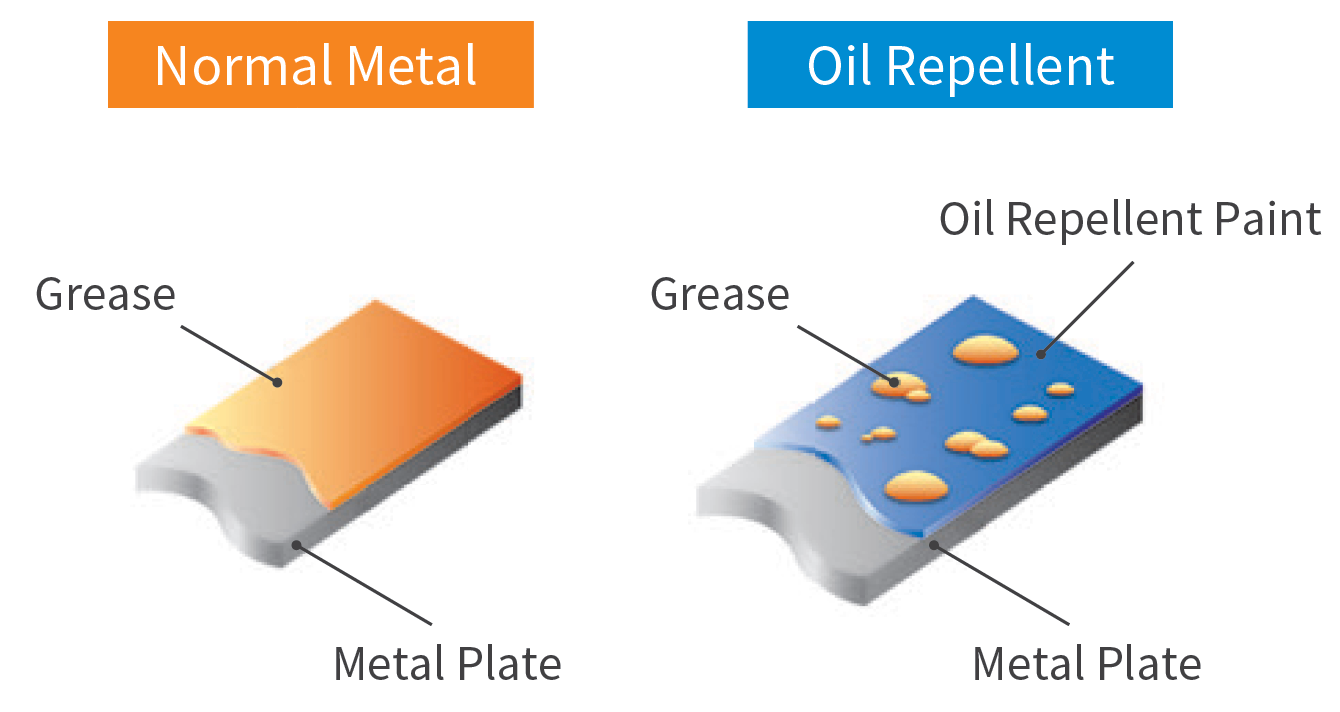 SUPER KIREI COATING repels oil to allow minimal oil sticking to the metal surface. This reduces the accumulation of oil and stain build-up on the fan, prolonging the life span of the fan.