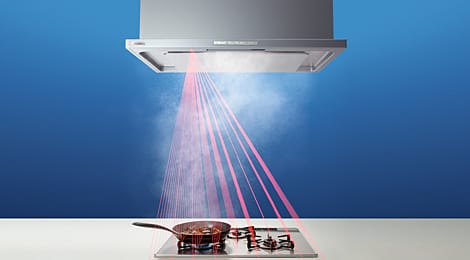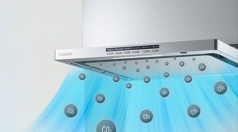 専用室内循環フード汚れた空気をろ過し、キレイな空気にして室内に戻すので空調エネルギー節約にも繋がるIHクッキングヒーター専用 室内循環フード。