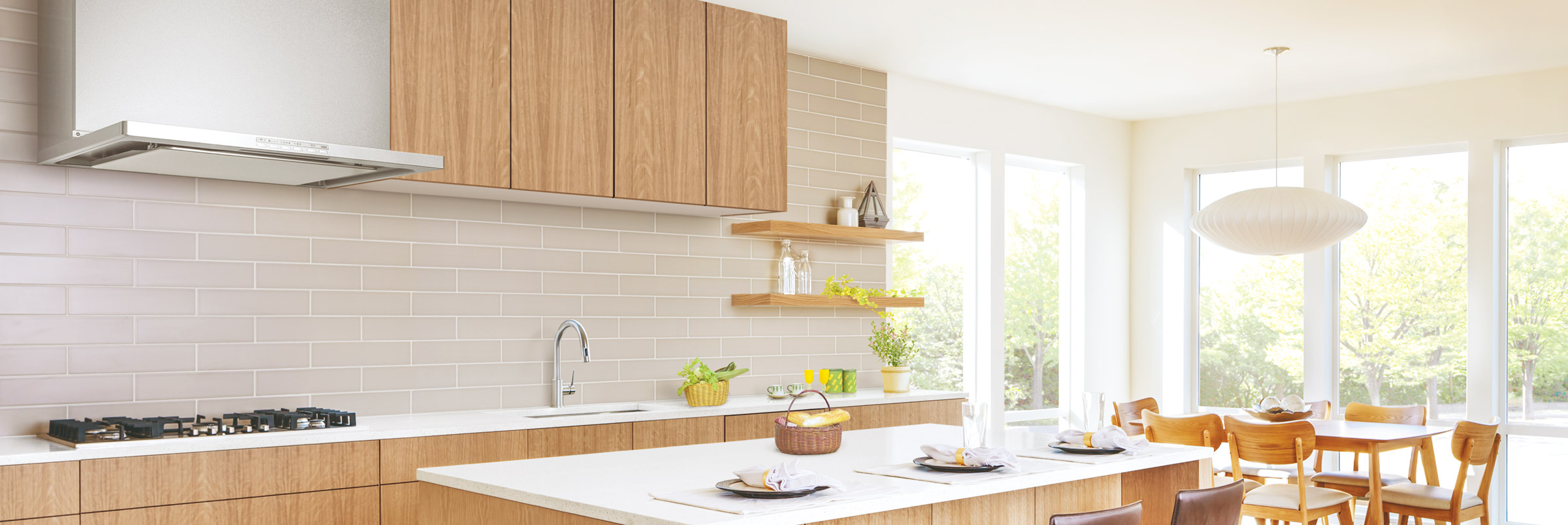 「プレミアムプラス」「プレミアム」「スタンダード」「同時給排」「BL認定品」「集合住宅用」等の幅広いラインアップを揃えたレンジフード。
