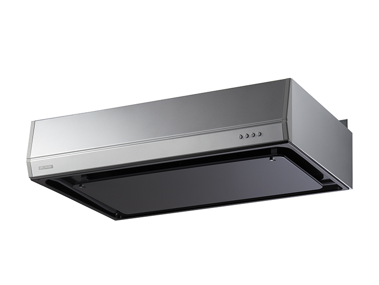 ■横梁や後梁、天井の低いキッチンにも対応可能なフラット型フード。排気方向が柔軟に対応できます。