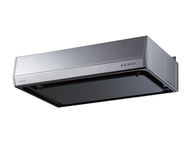 ■梁や天井の低いキッチンにも対応可能なフラット型フード。排気方向が柔軟に対応できます。