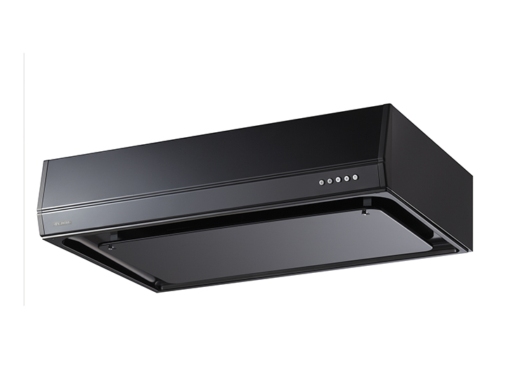 ■梁や天井の低いキッチンにも対応可能なフラット型フード。排気方向が柔軟に対応できます。