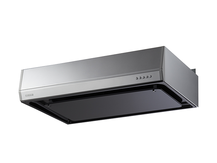 ■梁や天井の低いキッチンにも対応可能なフラット型フード。排気方向が柔軟に対応できます。