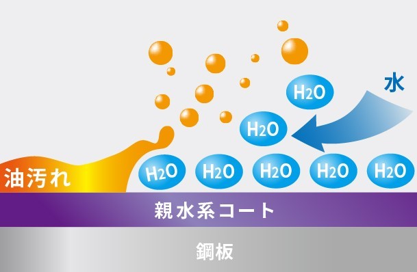 ■ディスクには水で油を浮き上がらせる親水系コートが施されているので、油汚れを水で洗い落とすことができます。