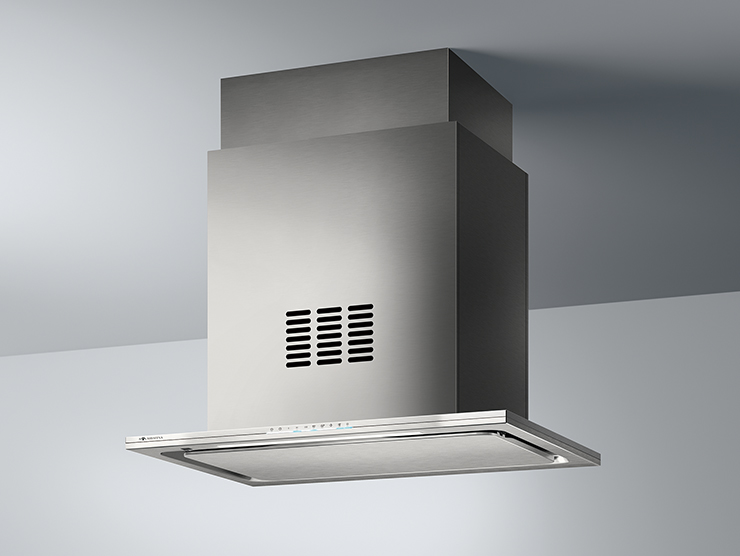 レンジフードが調理状況を温度センサーで検知し、3段階の風量レベルを自動でコントロール※1。油煙を効率よく捕集します。