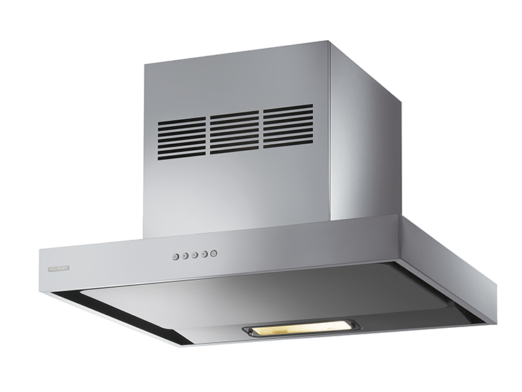 ■フード部分の厚み85㎜の薄型デザイン、機能性も重要視した強制給気タイプ同時給排型レンジフード。