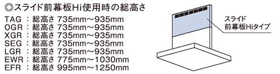 同梱しているスライド前幕板では高さが足りない場合、スライド前幕板の上部を交換して使用します。天井の高いキッチンにも対応できます。