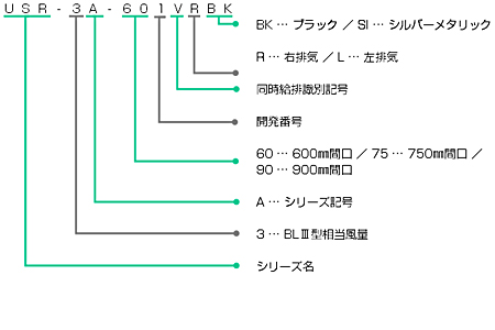 ■「スタンダード」シリーズ:USR-3Aタイプをベースとしたスリム型デザインの同時給排型フード。