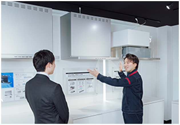携わっているレンジフードが完成し、お客様が「すごい」「みたことない」など驚きの表情が見れたときは今までの頑張りが認められたようでうれしく感じることがあります。また、完成させる過程の中で他部門の方からの問題が上がった時に同僚と相談し問題を解決した時には充実感、達成感もすごいです!