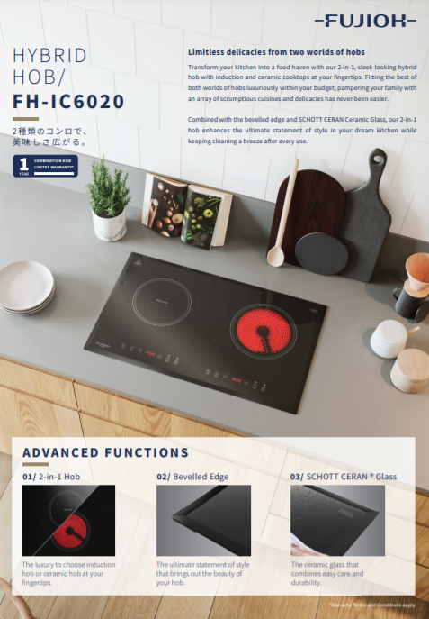Transform your kitchen into a food haven with our 2-in-1, sleek looking hybrid hob with induction and ceramic cooktops at your fingertips. Fitting the best of both worlds of hobs luxuriously within your budget, pampering your family with an array of scrumptious cuisines and delicacies has never been easier.