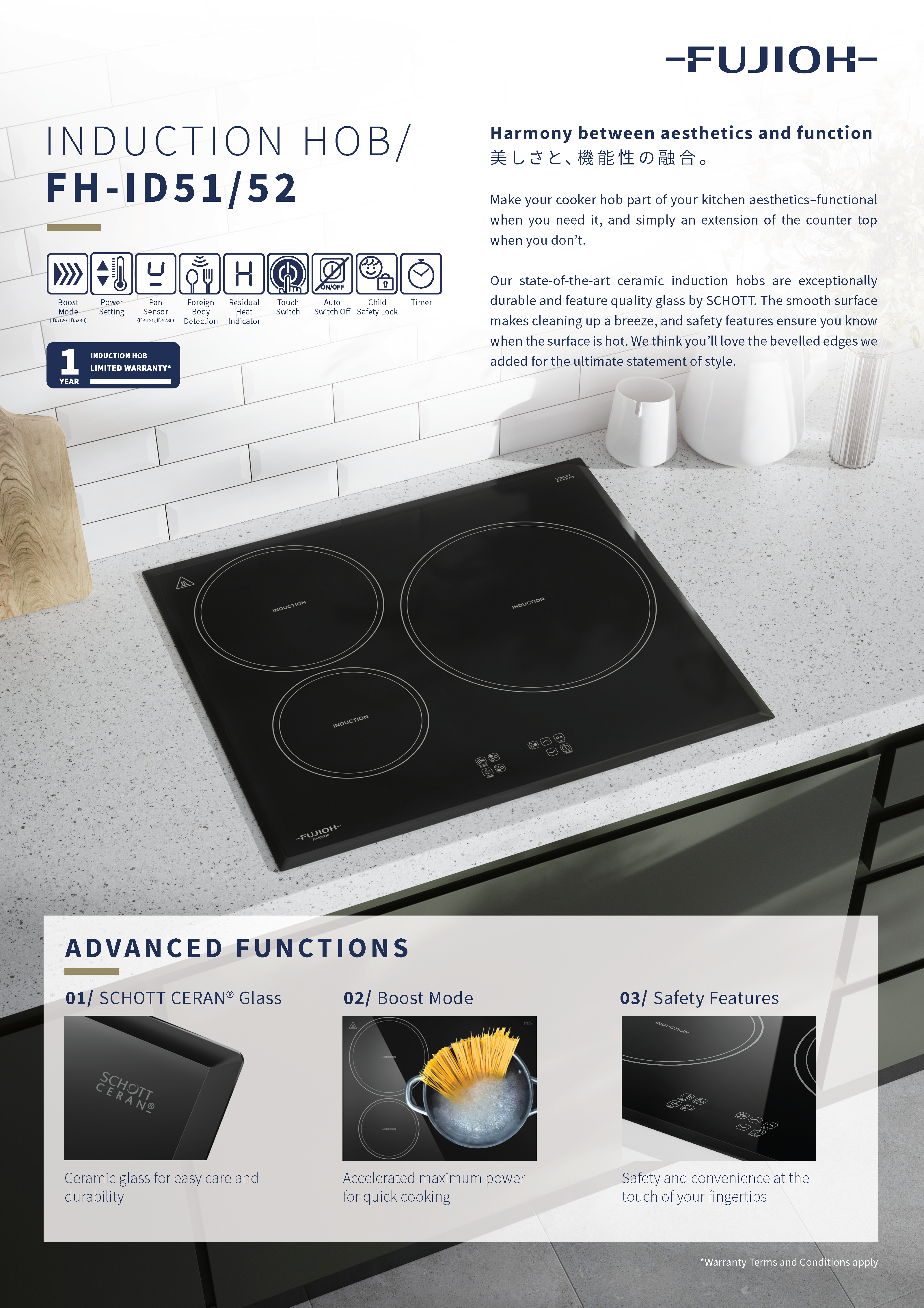 The bevelled edge is an additional process on the edge for decoration. The bevelled edge design is the ultimate statement of style that brings out the beauty of your ceramic induction hob.