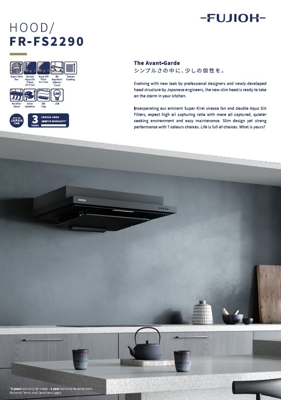 Evolving with new look by professional designers and newly developed hood structure by Japanese engineers, the new slim hood is ready to take on the storm in your kitchen.