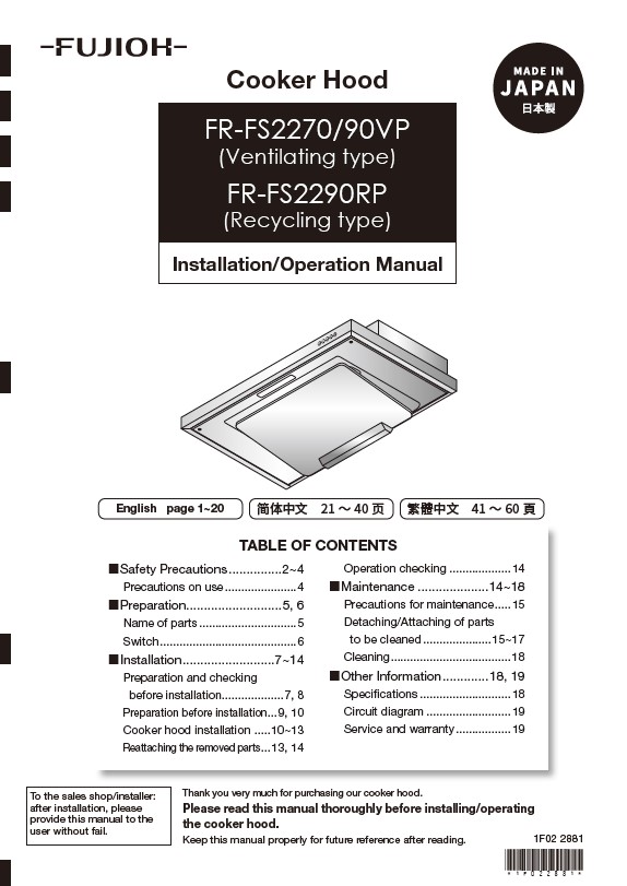 * All specification are based on stringent in-house test results conducted in Fuji Industrial Co., Ltd. Japan