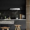 W890 x D550 x H150 (Please allow another 20mm height for power cable extension above the hood) |