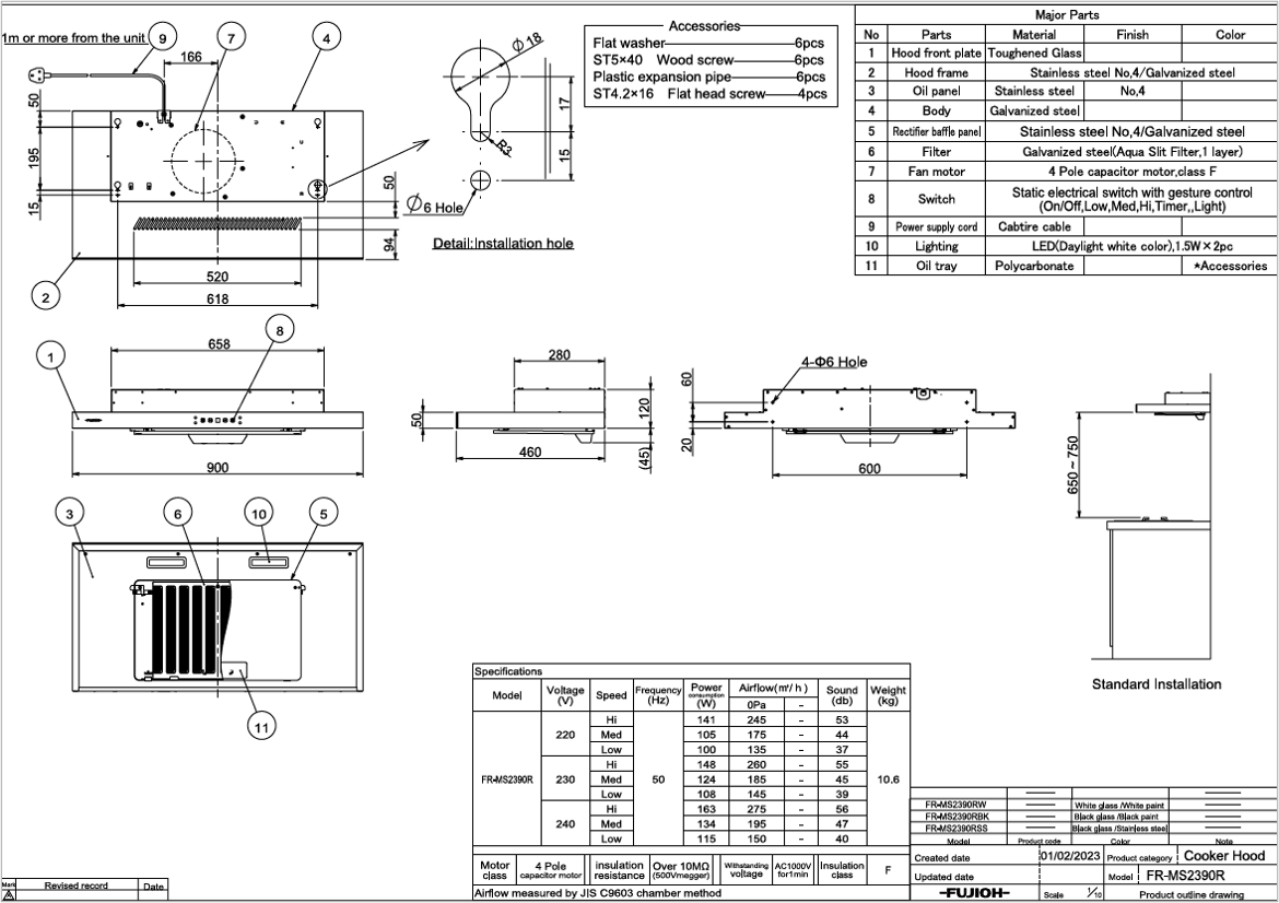 Air Flow [m3/h] (220/230/240V) |