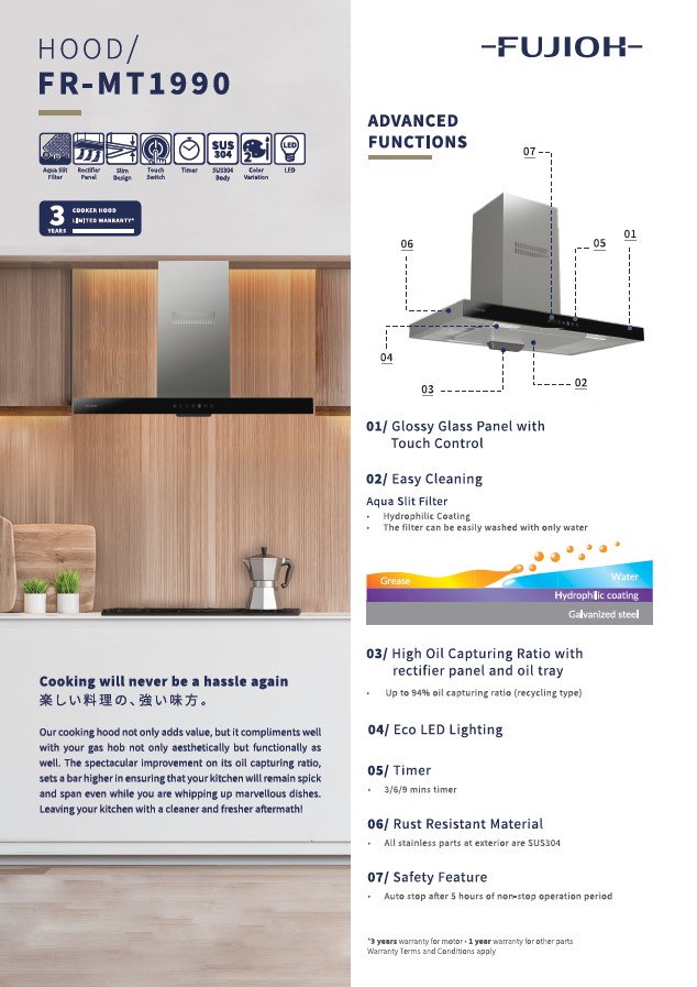 Our cooker hood not only enhances the value of your kitchen but also complements your hob, both in aesthetics and functionality. The spectacular improvement in its oil capturing ratio sets the bar higher, ensuring that your kitchen will remain spick and span even while you are whipping up marvellous dishes!