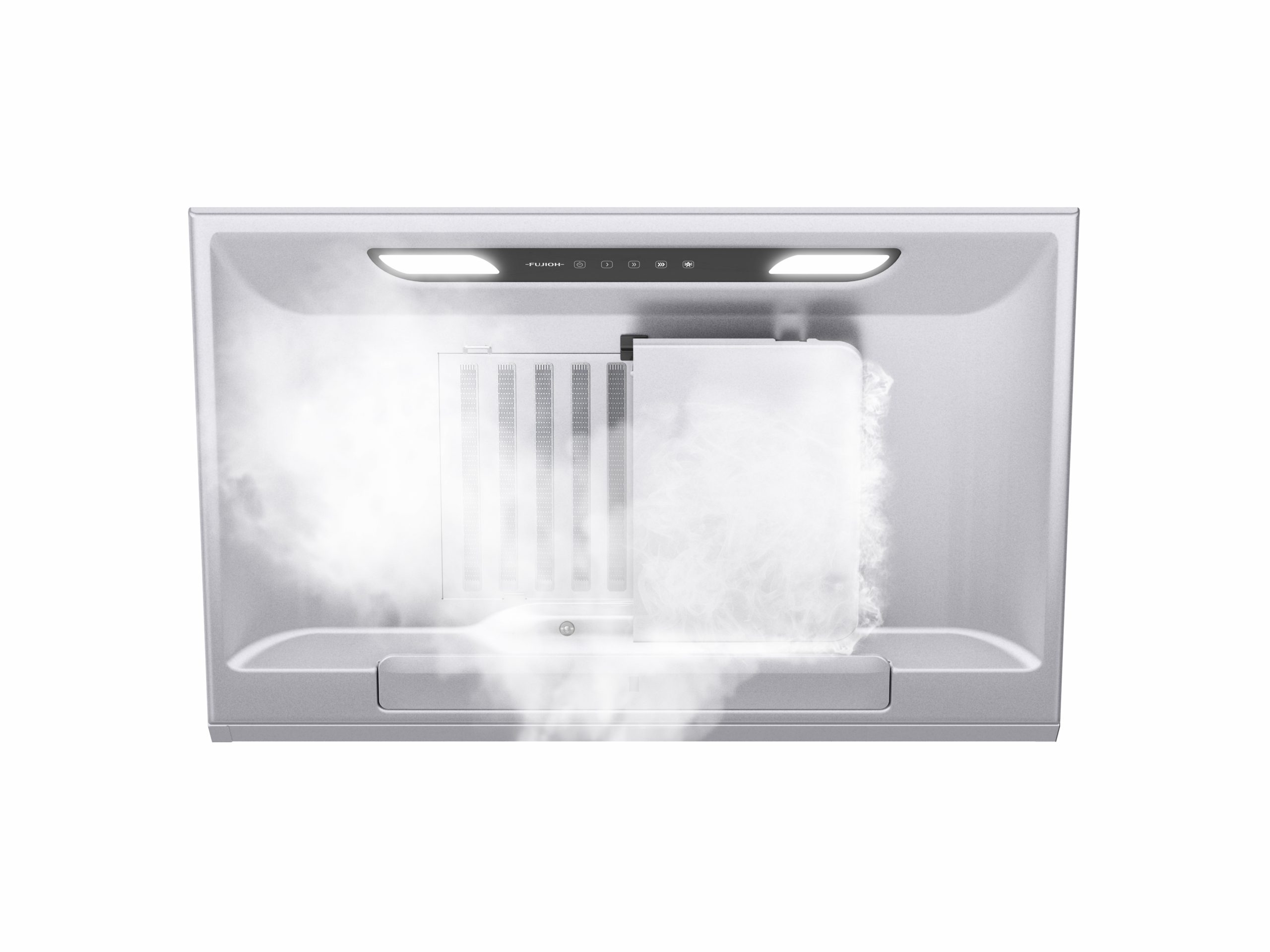 A fusion cooker hood of an ergonomic inclined design and easy cleaning feature bringing cleanliness to a revolutionized preeminent level. Your cooker hood has never been cleaner than before, both outside in.