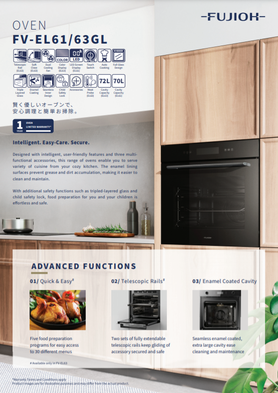 With additional safety functions such as tripled-layered glass and child safety lock, food preparation for you and your children is effortless and safe.