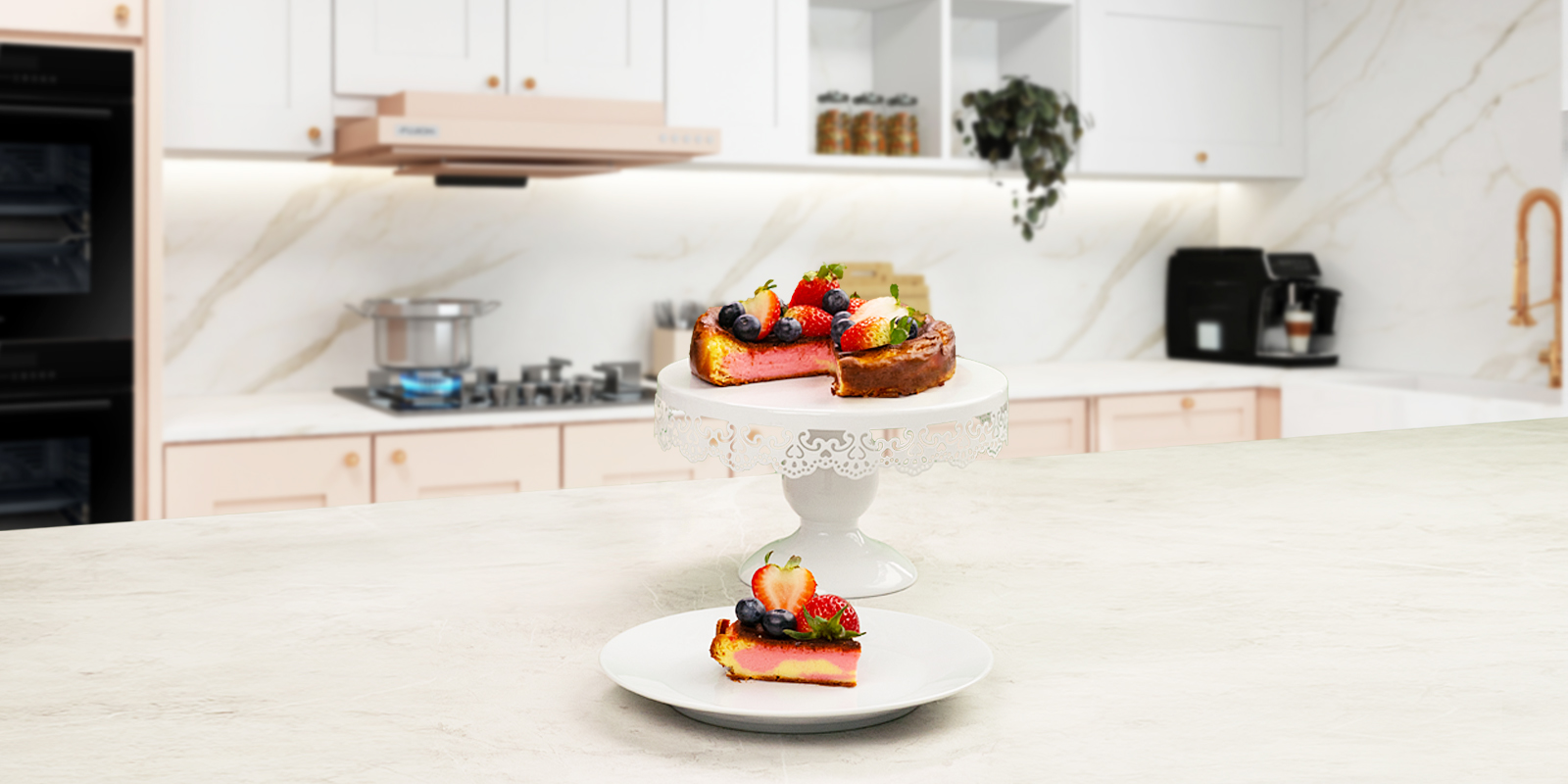 Inspired by FUJIOH’s Sakura Bloom Pink Cooker Hoods series, the Rosy Basque Burnt Cheesecake is a testament to culinary elegance. FUJIOH’s Sakura Bloom Pink Hood Series combines the fusion of style and functionality and is not just about aesthetics; it’s equipped with advanced features like powerful ventilation that effectively removes cooking fumes and odours, ensuring a clean and fresh kitchen environment.