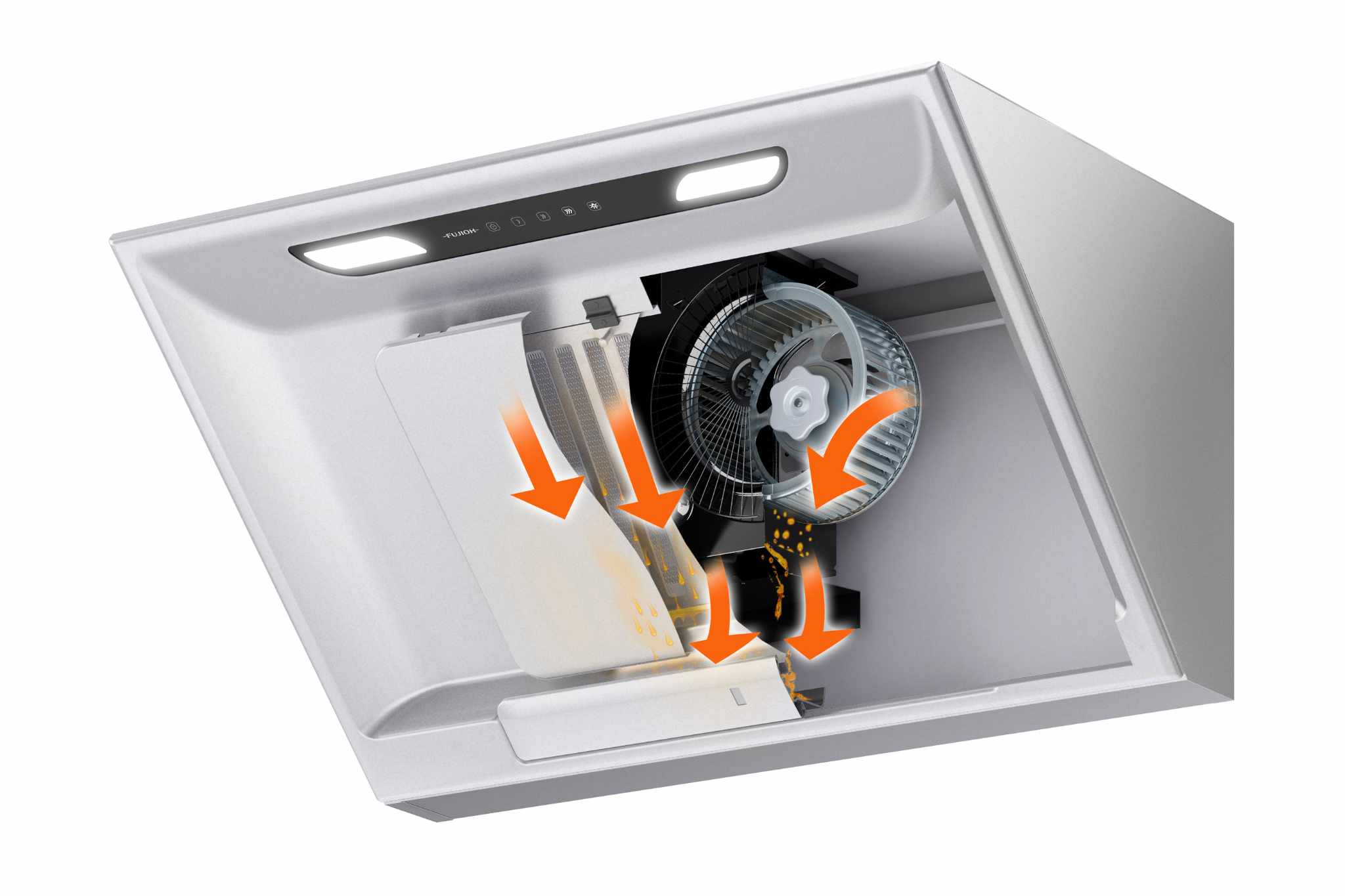 FUJIOH抽油煙機採用最適當的排油煙風量,平衡廚房空間氣流,幫助油煙、異味油污等有害物質能夠最高效率地被抽油煙機吸入、過濾及排除。