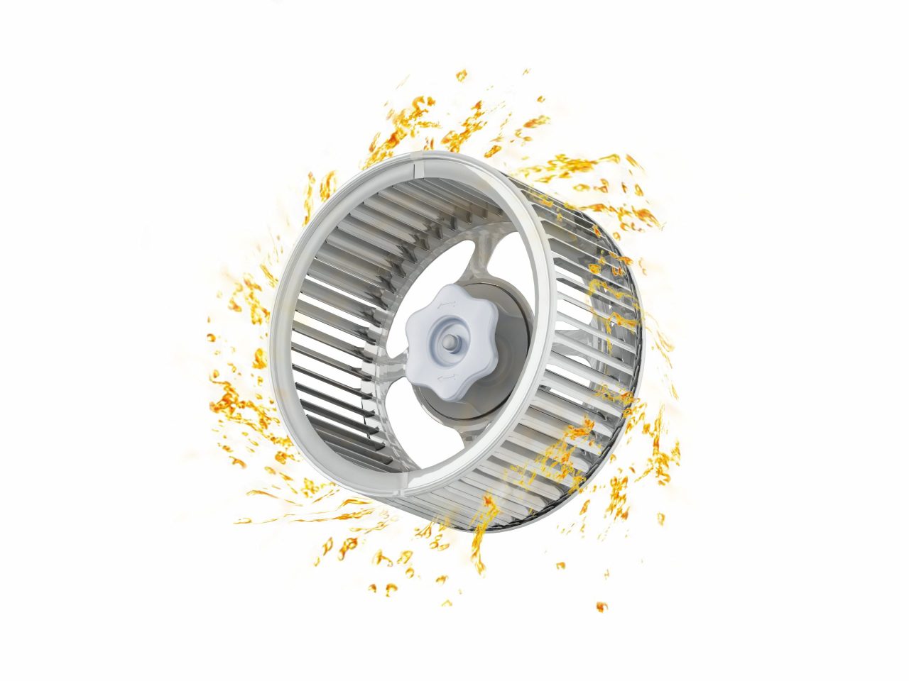 超級 Kirei 風扇增強捕獲油煙能力,超級 Kirei 塗層能有效地消除積聚在風葉的油污和污漬,使風扇和排油煙機內部保持清潔,延長了風扇的壽命。